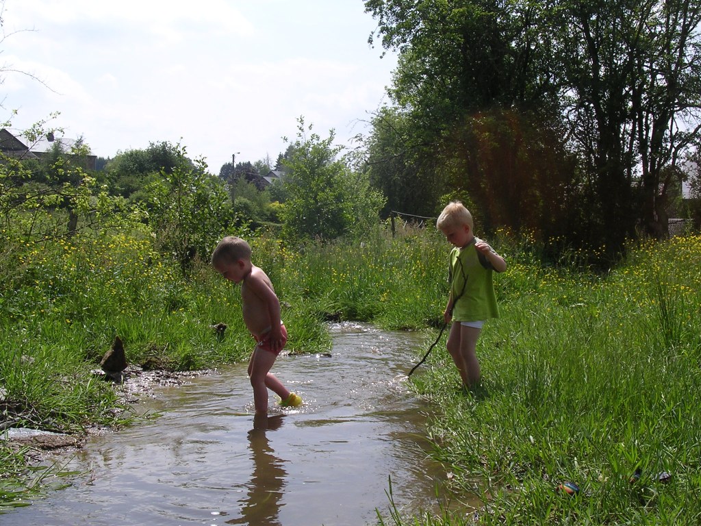 Het huis ligt op een terrein van een kleine 5000 meter, aan de rand van het perceel stroomt een klein beekje: Ruisseau de Bêche. Op het terrein hebben we een grote loods met veranda, een boomgaard, een terras en een veld om lekker op te voetballen.