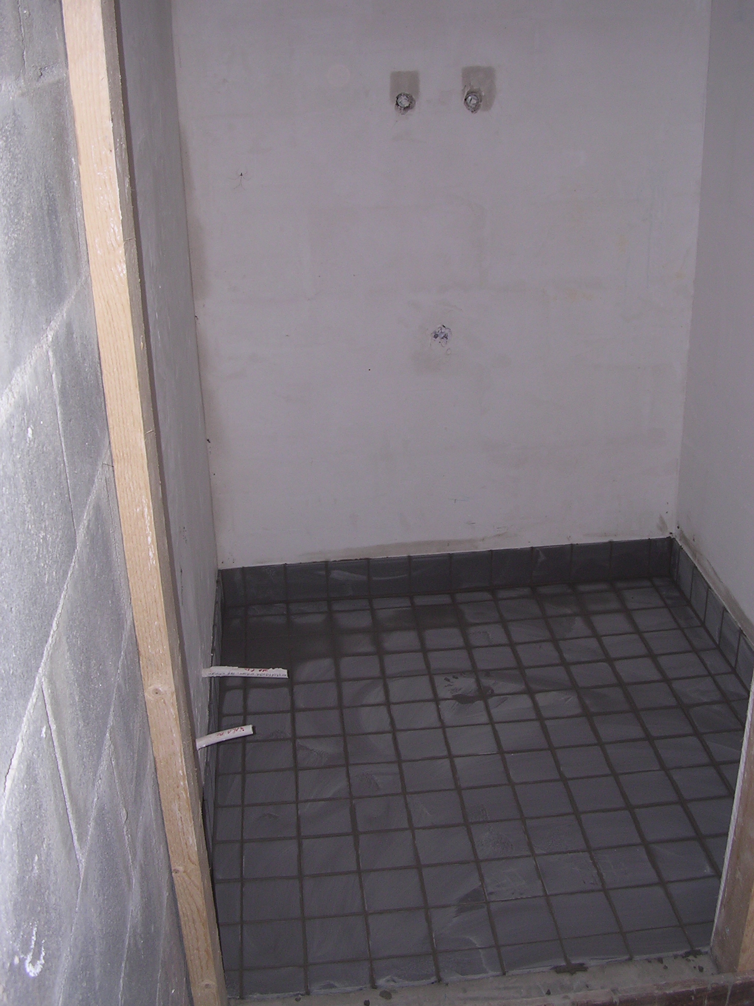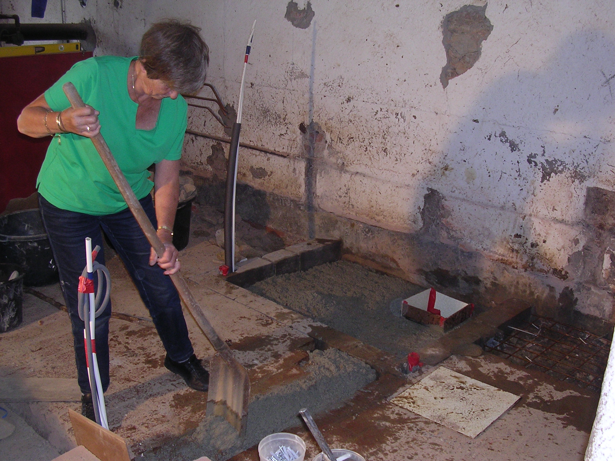 We zijn begonnen met een afvoerleiding naar de gierput buiten te graven. Daar na hebben we binnen in de stal eerst de WC en toen de badkamer gebouwd. Een flinke klus omdat we ook nieuwe water en verwarmingsleidingen moesten aanleggen waarbij ook nog eens rekening moest worden gehouden met de toekomstige uitbreidingen.