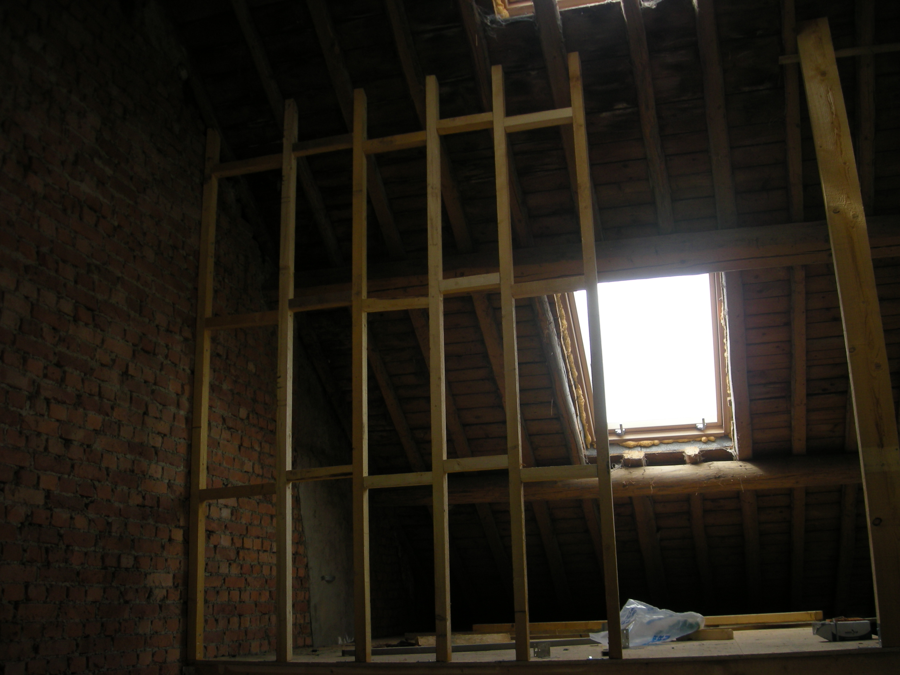 Nadat Toni het nieuwe plafond voor onze slaapkamer erin had gelegd en ook nog even de muren had neergezet konden we verder met het maken van nog meer wanden, frames etc.