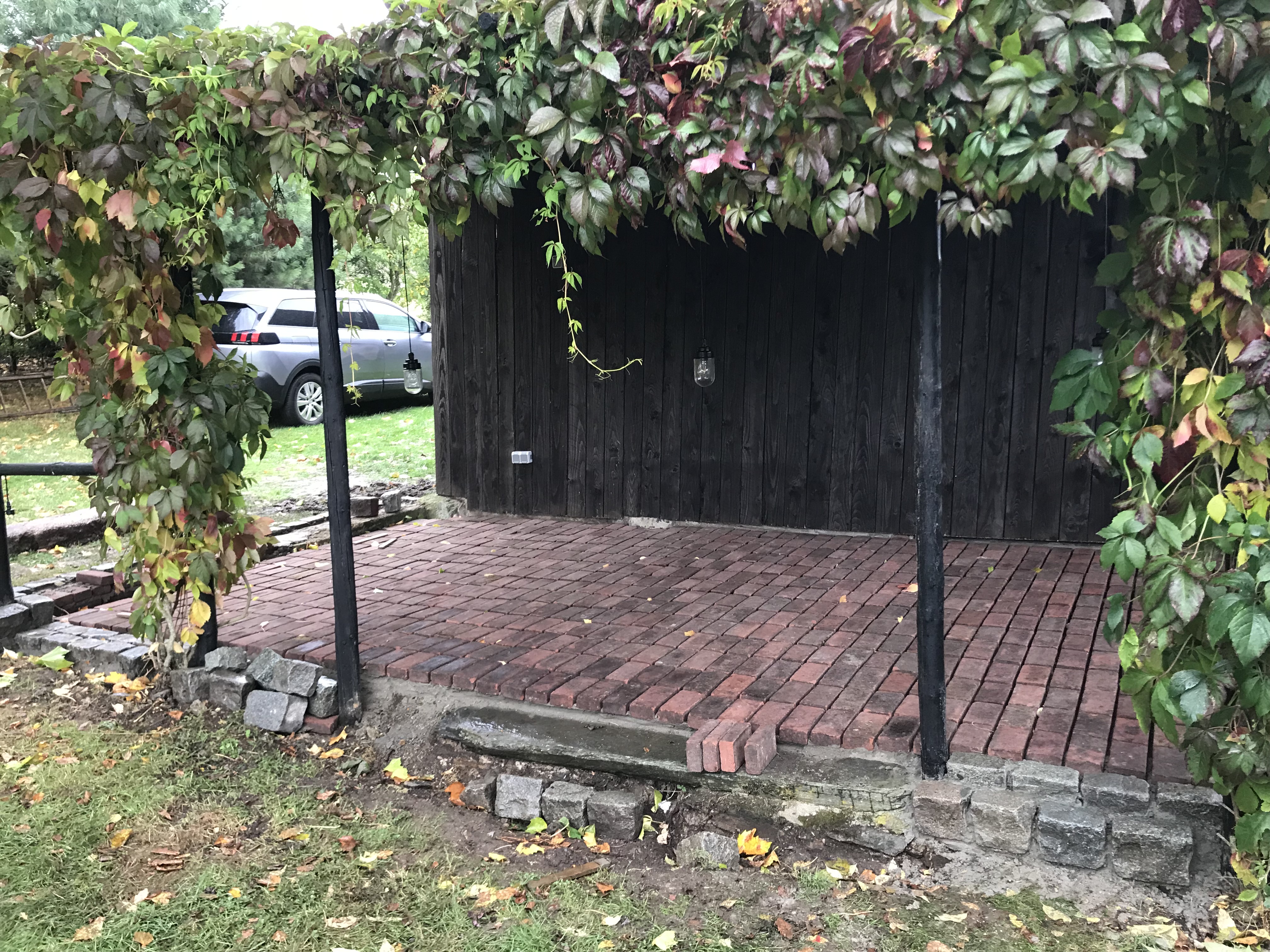 In 2019 is met stenen uit onze Hilversumse tuin en wat restanten kinderkopjes een mooi vloertje gelegd.